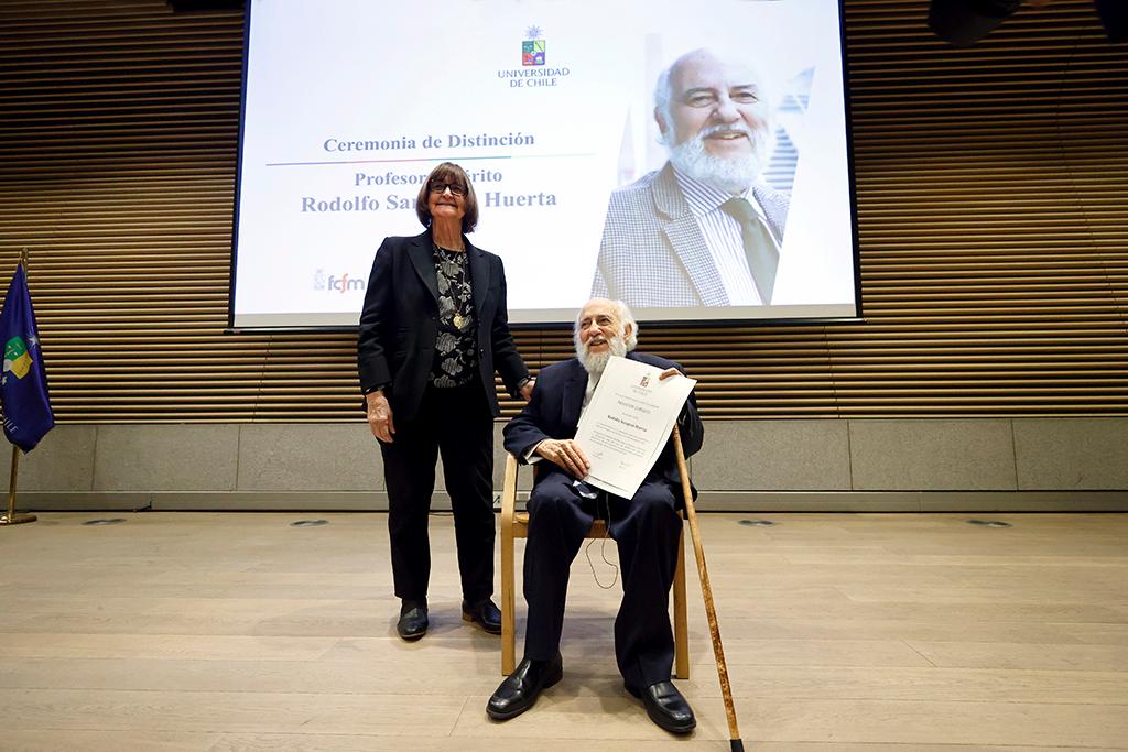 En una emotiva ceremonia realizada el viernes 24 de octubre en el Auditorio Enrique d’Etigny de la Facultad de Ciencias Físicas y Matemáticas (FCFM), la Universidad de Chile distinguió al profesor Rodolfo Saragoni Huerta con el título de Profesor Emérito, en reconocimiento a su sobresaliente trayectoria académica y a sus contribuciones pioneras en el campo de la ingeniería sísmica.